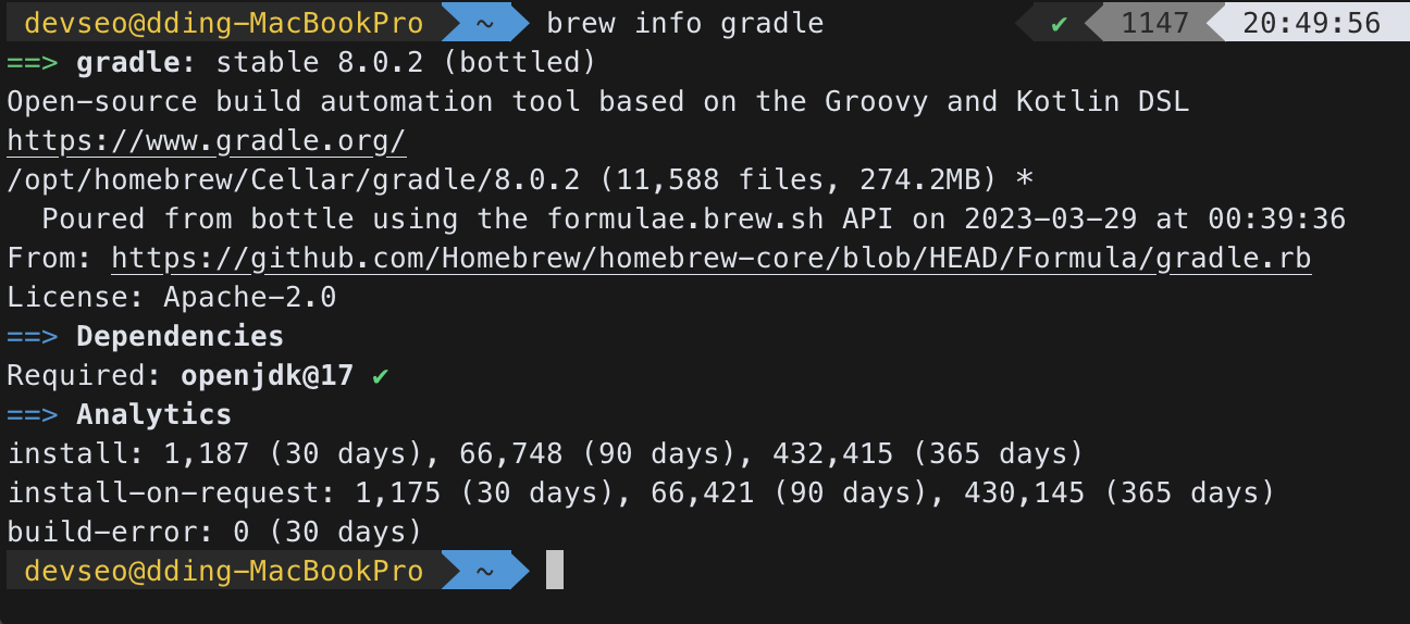 brew info gradle
